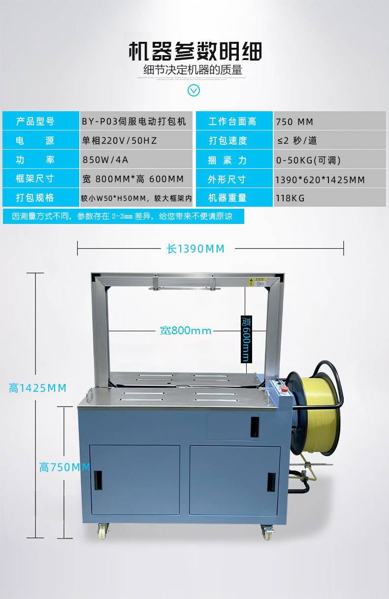 The servo motor has no mechanical contact loss. The core components (such as guide rails and cutters) are made of wear-resistant materials. Combined with intelligent fault early warning (such as overload protection and strap 余量 reminder), the service life can reach 50,000-100,000 cycles, and the maintenance frequency is reduced by more than 70%. For example, when the cutter wears to the critical value, the system will automatically prompt for replacement to avoid sudden shutdown.