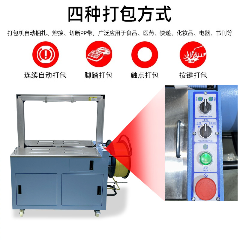 - Tape speed and welding time (adapted to straps of different materials, such as PP straps and PET straps).