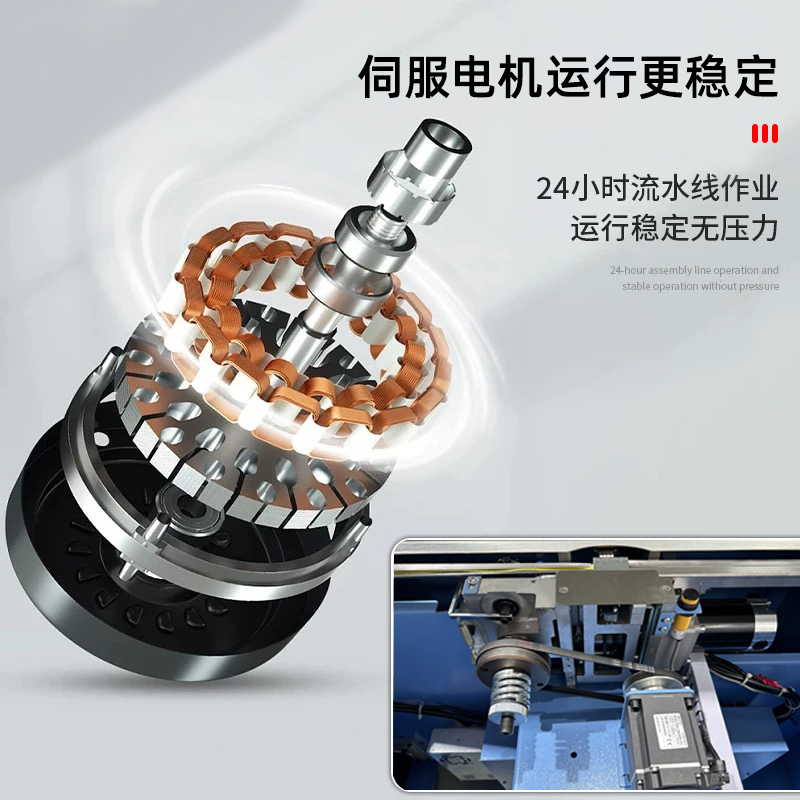The precise speed regulation and instant start-stop characteristics of servo motors enable the strapping machine to achieve millisecond-level response in processes such as tape feeding, tensioning, welding, and cutting. Compared with traditional pneumatic or mechanical drive equipment, its single-cycle strapping time can be reduced by more than 30% (for example, traditional equipment takes 2-3 seconds per package, while servo models can compress it to 1-1.5 seconds). Combined with the continuous feeding design, it can easily achieve high-speed operation of 20-40 packages per minute, meeting the rhythm requirements of mass production.