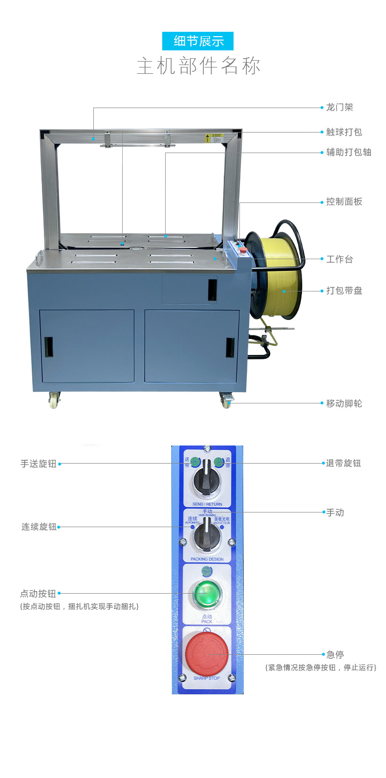 - Adding a side strapping mechanism to realize side strapping of vertical materials (such as pipes and plates);