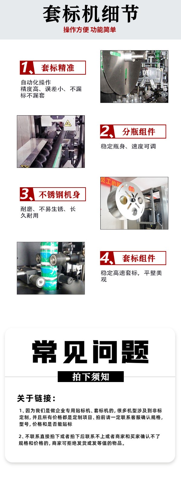 - Information Compliance: The machine supports "tamper-proof label sleeving" (e.g., "void if torn" labels for pharmaceutical bottles) and "traceable information label sleeving" (e.g., one-to-one correspondence between the production date, batch number of food and labels). Moreover, the content printed on labels is locked by the PLC, preventing information errors caused by manual operations and meeting the traceability requirements of the industry.
