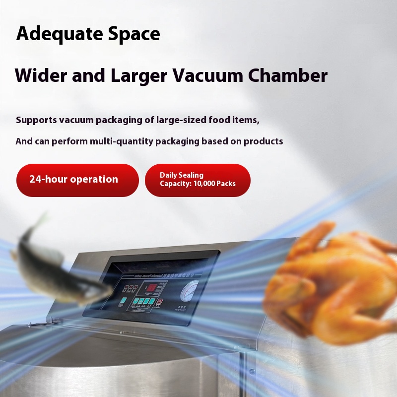 A core advantage of vertical cabinet vacuum packaging lies in its super large vacuum chamber space, whose volume is much larger than that of desktop or tabletop vacuum packaging equipment: