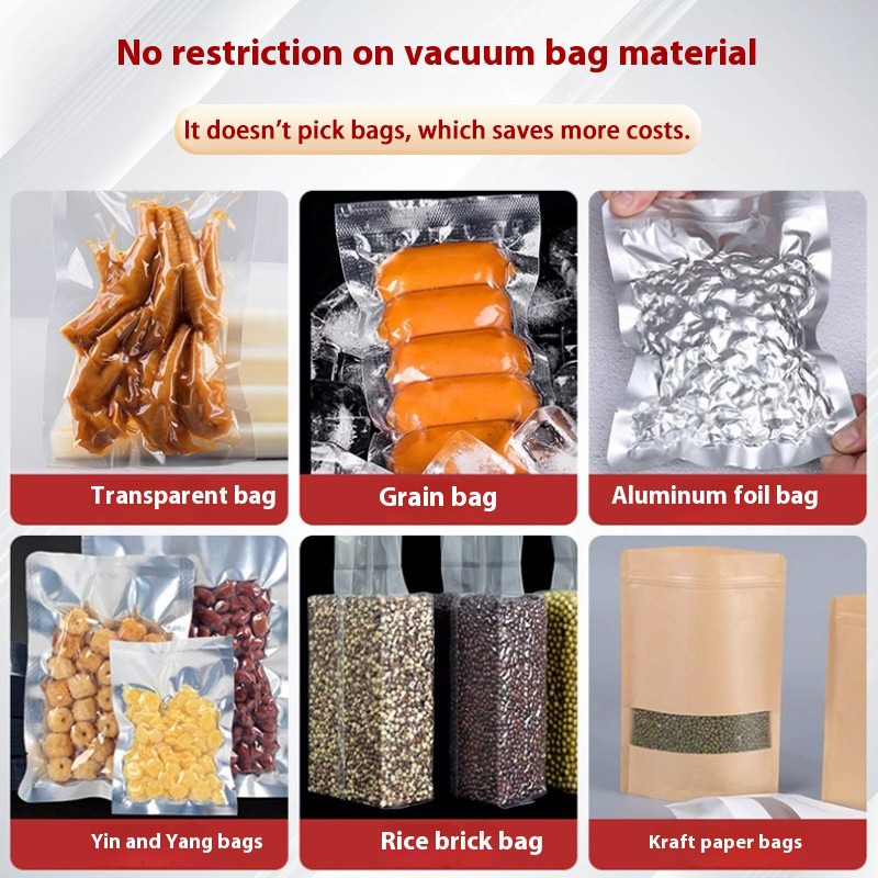 - It supports "multi-item co-packaging": multiple small-sized packages (e.g., independent small nut bags) can be placed into the vacuum chamber together with outer cartons or plastic buckets to achieve "secondary vacuum sealing", which reduces the volume of outer packaging while enhancing protection;
