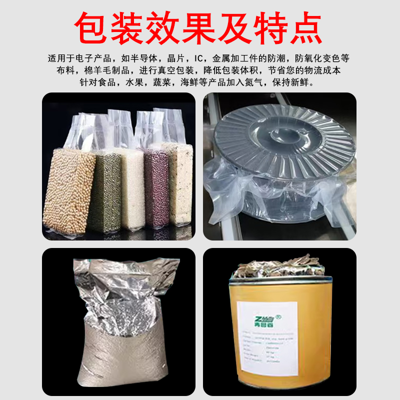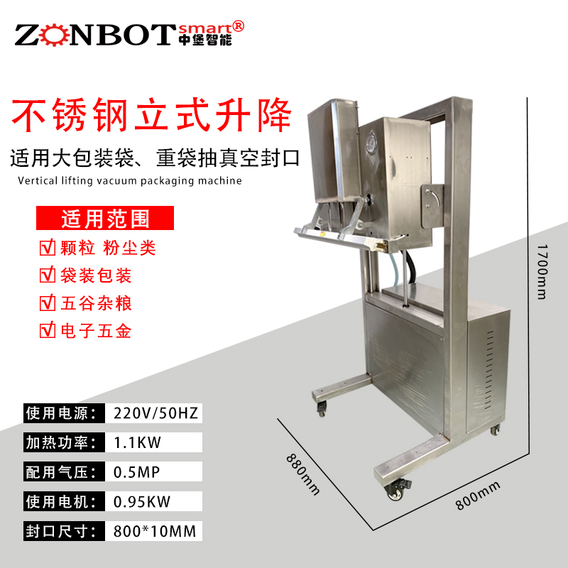 The vertical lifting vacuum packaging machine, not restricted by a vacuum chamber, is suitable for vacuuming and sealing large packaging bags and heavy bags.