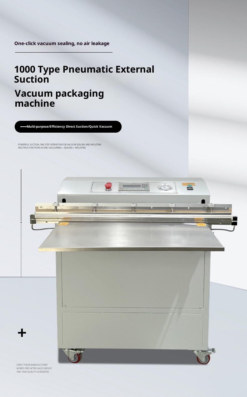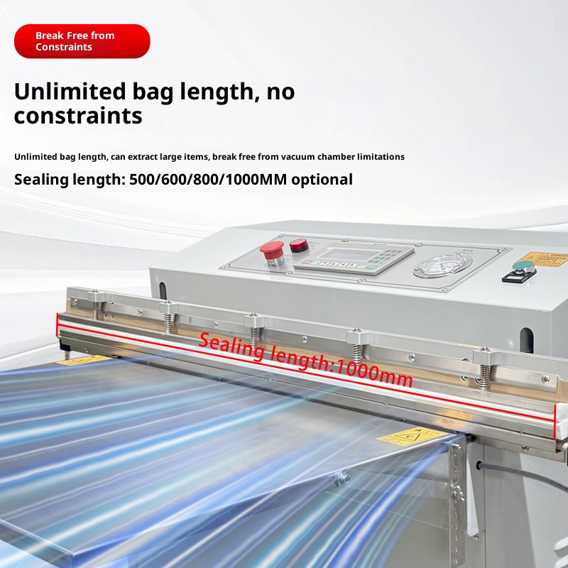 The heat-sealing strip of an external vacuum packaging machine is typically located beneath the air suction nozzle or at the sealing mechanism, with a metal protective shield on the exterior (to prevent accidental contact with high temperatures).