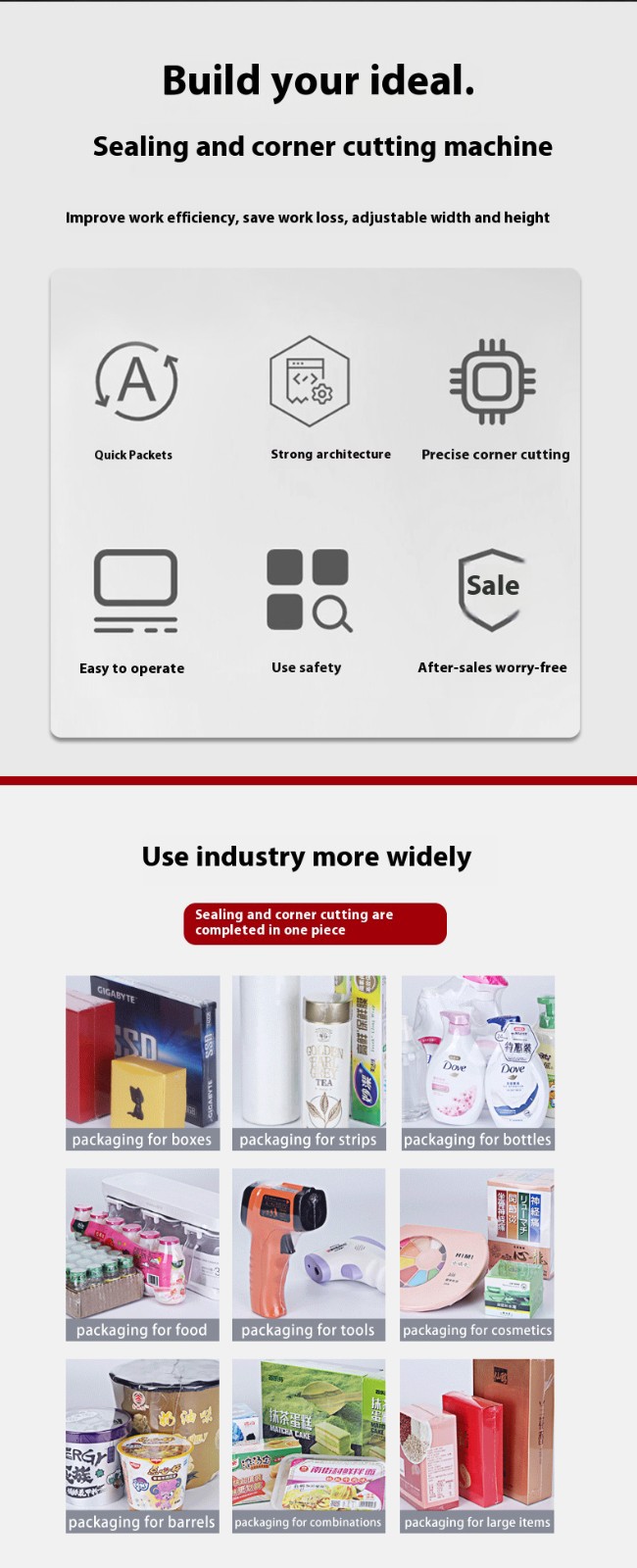 Seal IntegrityFood and pharmaceutical packaging requires excellent sealing performance to prevent the ingress of external air, moisture, microorganisms, etc., which may affect product quality and safety. High-quality sealing and corner-cutting machines, through precise control of sealing temperature, time, pressure and other parameters, can form firm and airtight seals between packaging materials, effectively blocking the intrusion of foreign substances and satisfying the sealing requirements of food and pharmaceutical packaging.