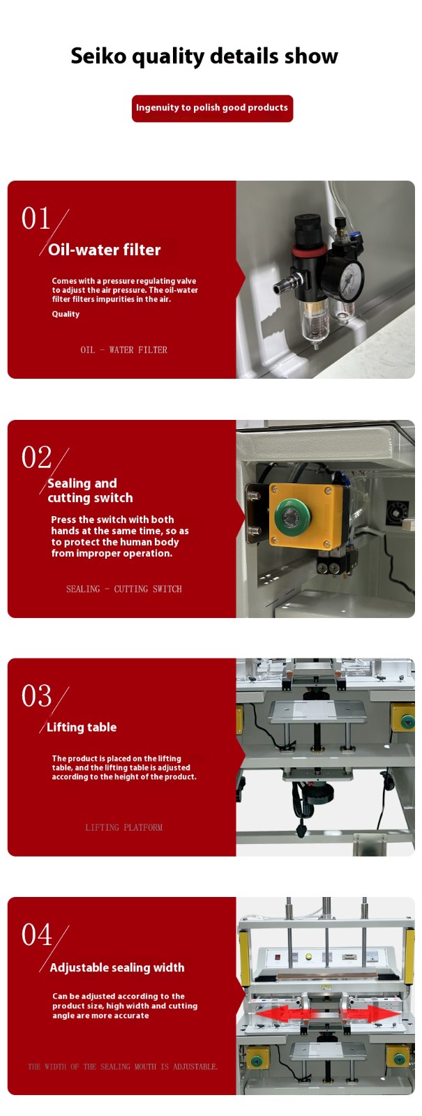 Operating ProceduresThe skill level and operating discipline of operators affect sealing results. Incorrect parameter settings, operating procedures or maintenance by operators may lead to poor sealing. To solve this problem, enterprises need to provide professional training for operators, familiarize them with equipment operation methods and precautions, strictly follow operating procedures, and conduct regular equipment maintenance to ensure the equipment is in good working condition.
