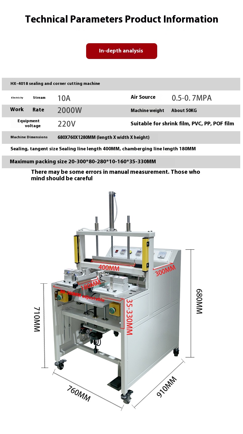 Equipment SelectionDifferent food and pharmaceutical packages have different requirements for sealing effects. Improper equipment selection may fail to meet specific packaging standards. For example, high-barrier packaging materials or specially shaped packages require sealing and corner-cutting machines with corresponding functions and performance. Therefore, when purchasing equipment, enterprises should select suitable models based on their product packaging characteristics and relevant standards, and consult professional advice from equipment suppliers.