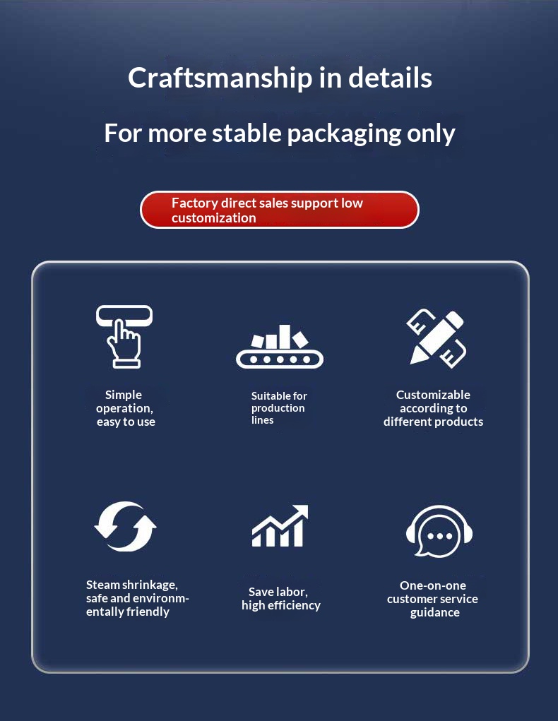 Excellent packaging effect: It enables the shrink film to fit tightly on the product surface, forming an attractive and firm package, effectively preventing moisture, oxidation, contamination, etc., and enhancing the product appearance.