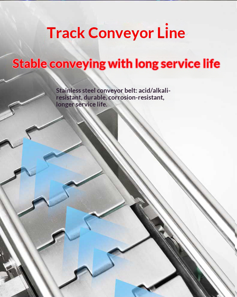 Classified by conveying mode: It can be divided into mesh belt type, chain plate type, roller type, etc. The mesh belt type is suitable for light and small products; the chain plate type is suitable for heavy and large products; the roller type is mostly used for packaging cylindrical or regular-shaped products.