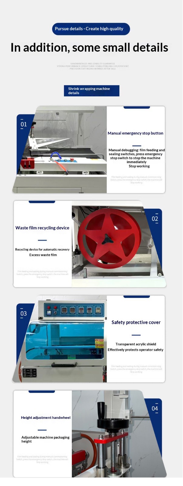 • Heat Shrink System: Multi-zone temperature control (adjustable from 0-300℃ with an error of ±2℃) supports adaptation to different film materials, delivering flat and wrinkle-free shrink results that fit the product tightly without looseness;