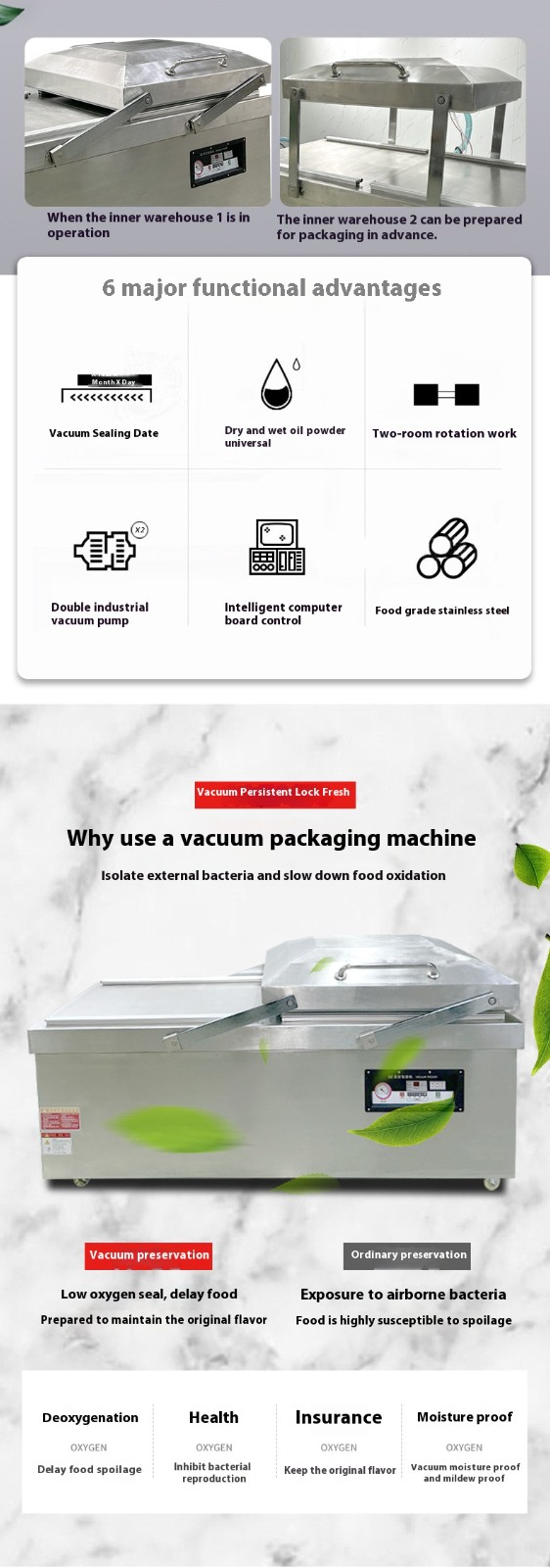 Here are the advantages of double-chamber vacuum packaging machines, along with detailed explanations: