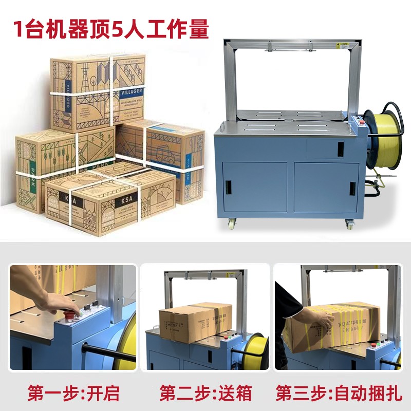 • The servo motor can precisely control the tension of the strapping belt (typically adjustable from 5-100N) according to the product material (e.g., fragile items, hard products).