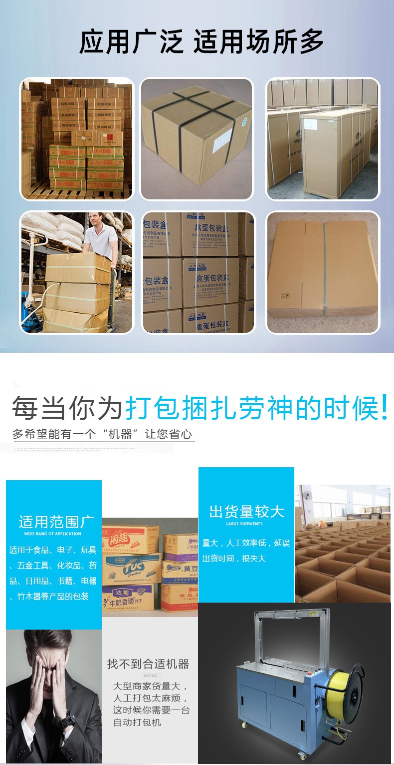 The adjustment of strapping parameters (force, strap length, strapping position) is cumbersome, requiring manual replacement of mechanical components (such as cams, baffles). When adapting to products of different sizes and materials, the model change time is as long as more than 30 minutes, making it difficult to cope with multi-variety and small-batch production.