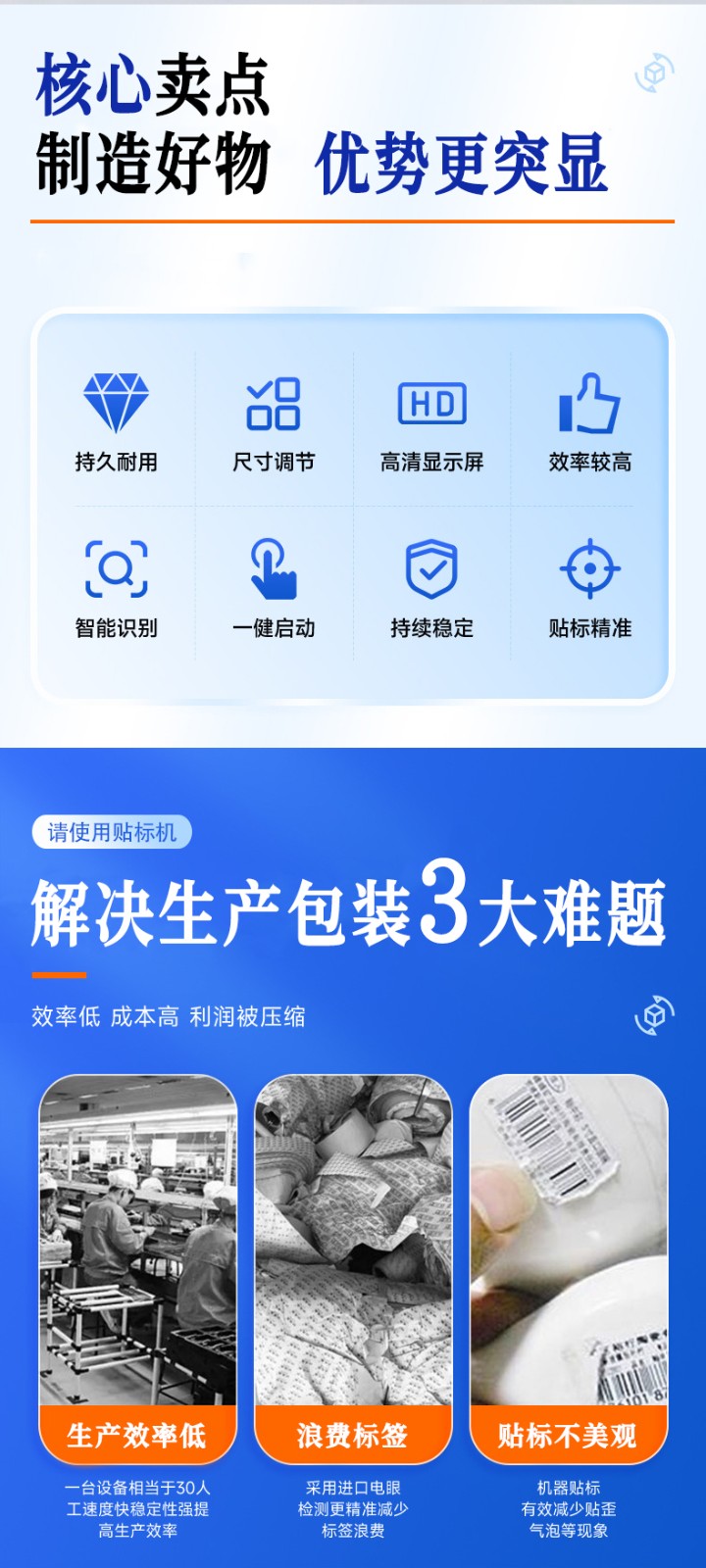 - Speed Aspect: Mainstream models can achieve a labeling efficiency of 600-1000 bottles per minute (BPM) (e.g., Zhongbao Intelligent’s i-Sleeve Pro II reaches 1000 BPM/180mm), far exceeding the manual labeling speed of 10-20 bottles per minute. This meets the demand for "24/7 continuous production" in the food and beverage industry.