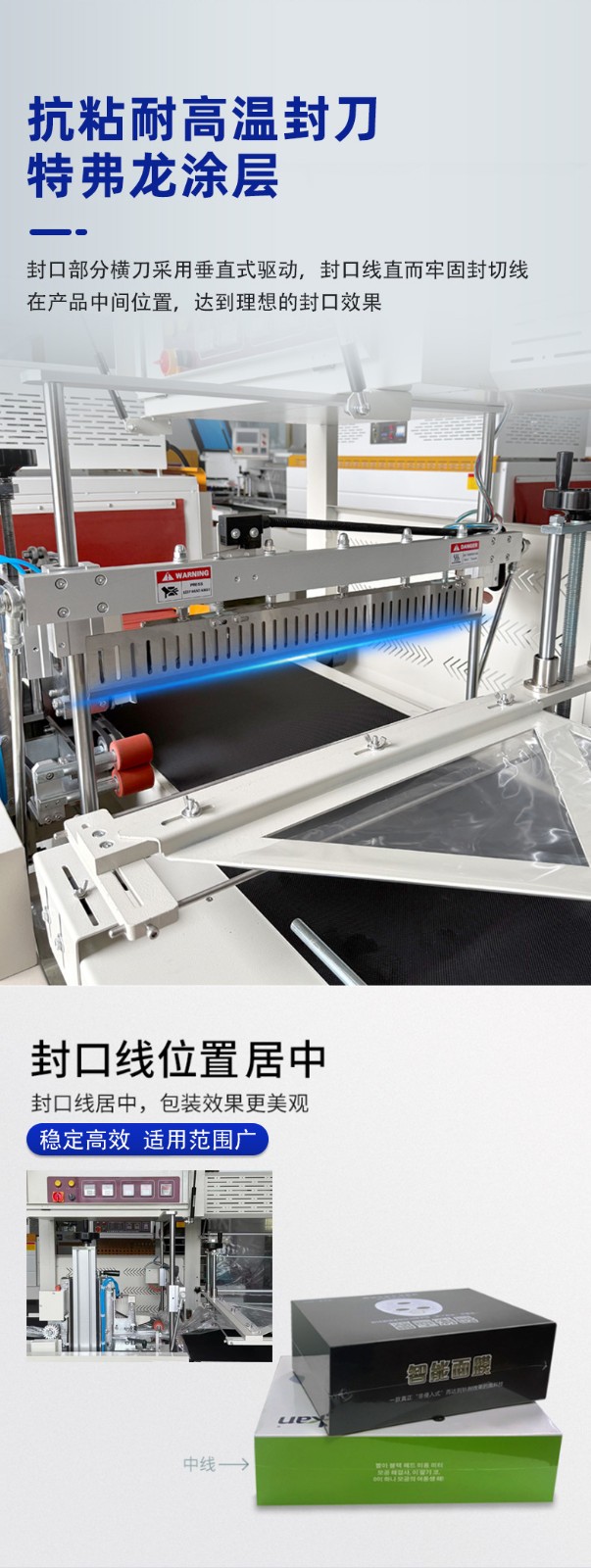 - High-Quality Sealing-Cutting Knife Material: The sealing-cutting knife is made of imported special materials, and its surface is coated with American Teflon high-temperature resistant material. This ensures that the seal is not broken, the sealing line is strong, and there is no cracking, coking or smoking, making the sealing line firm and aesthetic.