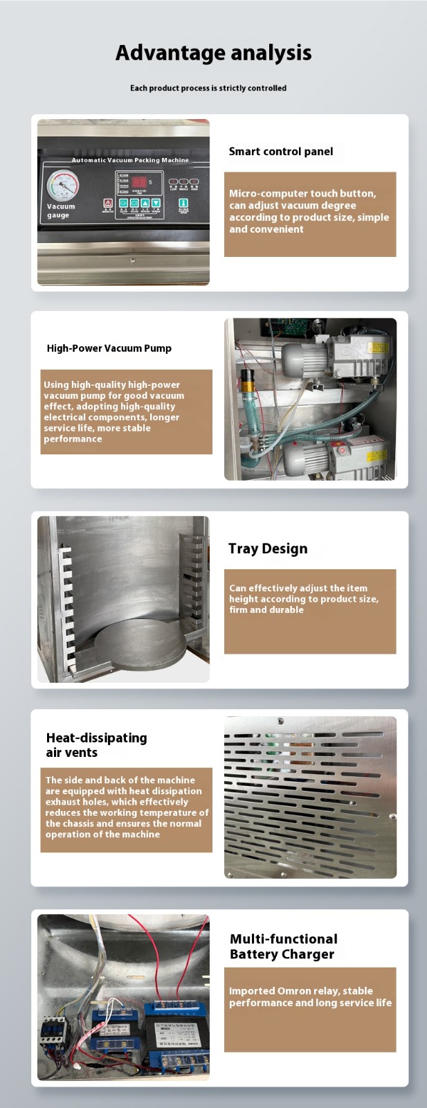 - Verify the indicator lights on the control panel: After starting the machine, check if the power light, vacuum light, and sealing light are on normally. If the indicator lights are abnormal (e.g., flickering or not turning on), stop the machine to check the circuit and do not force operation.