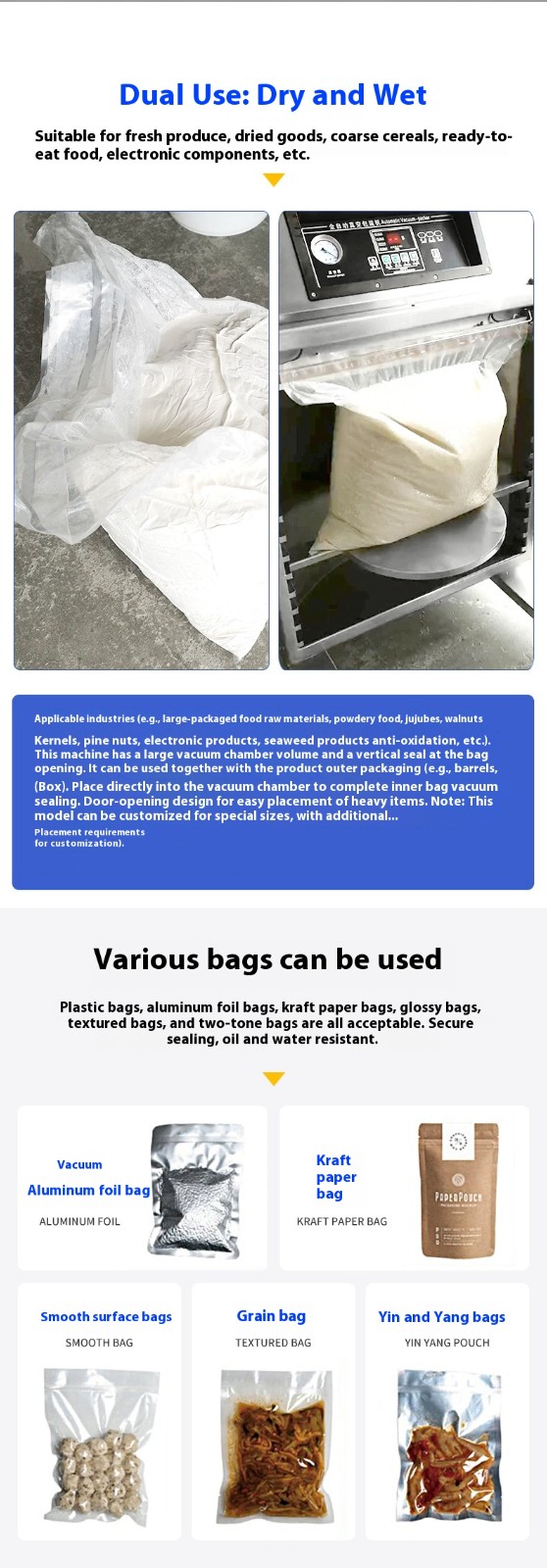 The core goals of daily maintenance and care for vertical cabinet vacuum packing machines are to prolong the equipment's service life, ensure stable vacuum degree, and avoid sealing failures. Maintenance should focus on the four core modules: "vacuum system, sealing system, mechanical structure, and electrical system". Specific techniques can be divided into three categories: daily inspection, regular maintenance, and special maintenance.