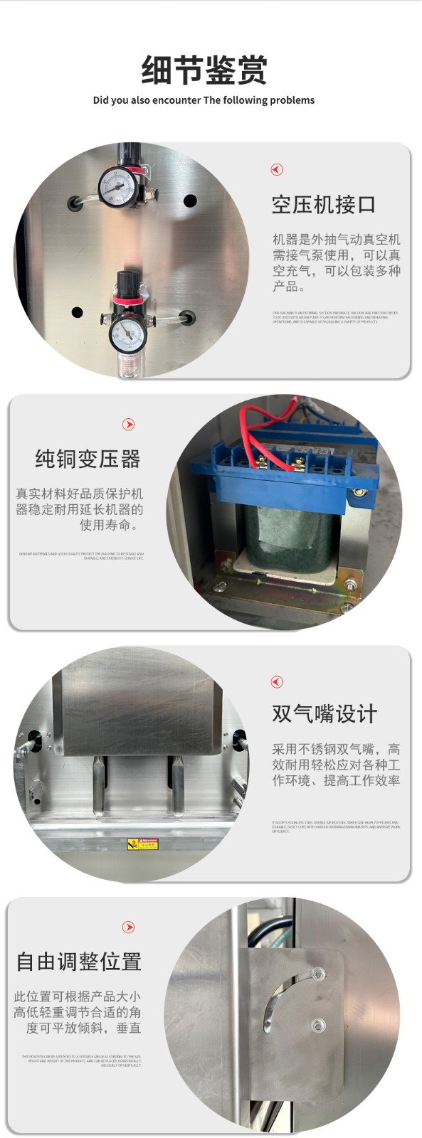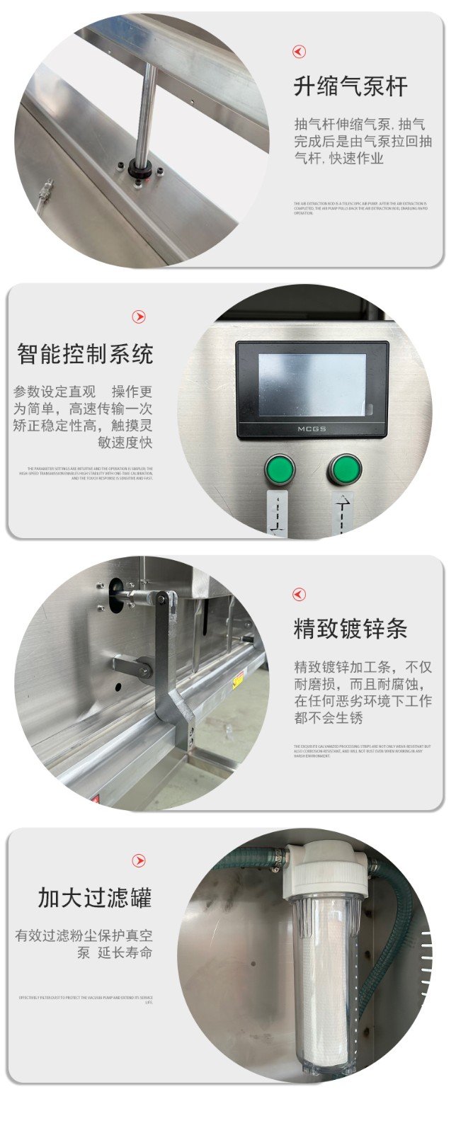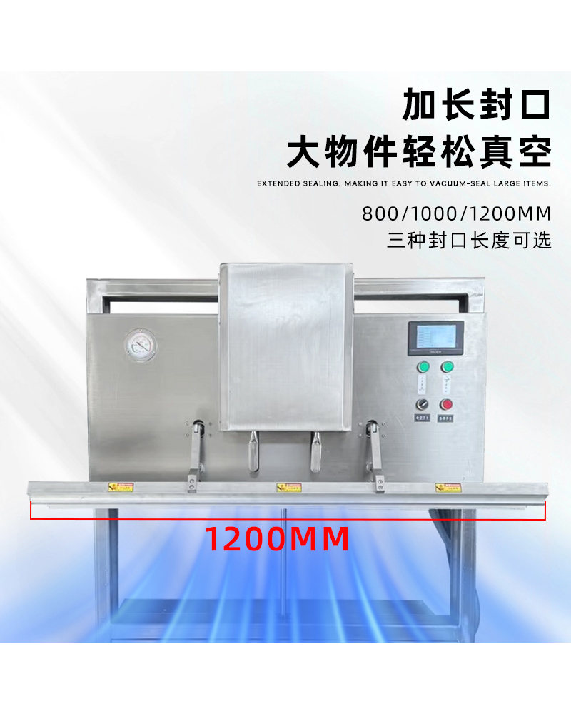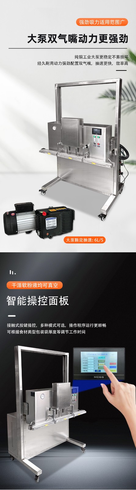 The vertical lifting vacuum packaging machine meets the vacuum packaging needs for large-sized, heavy-weight, irregular-shaped products, or multi-category small-batch production.