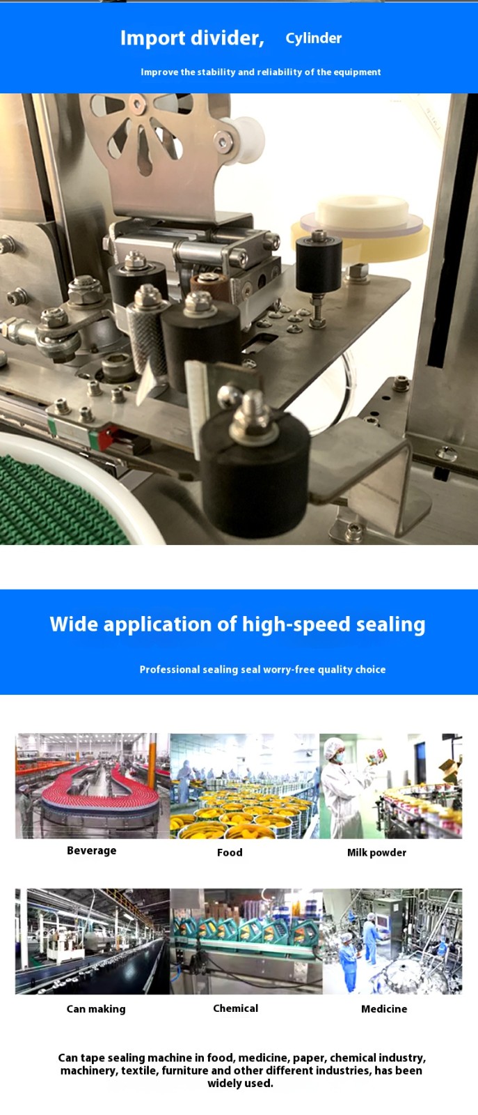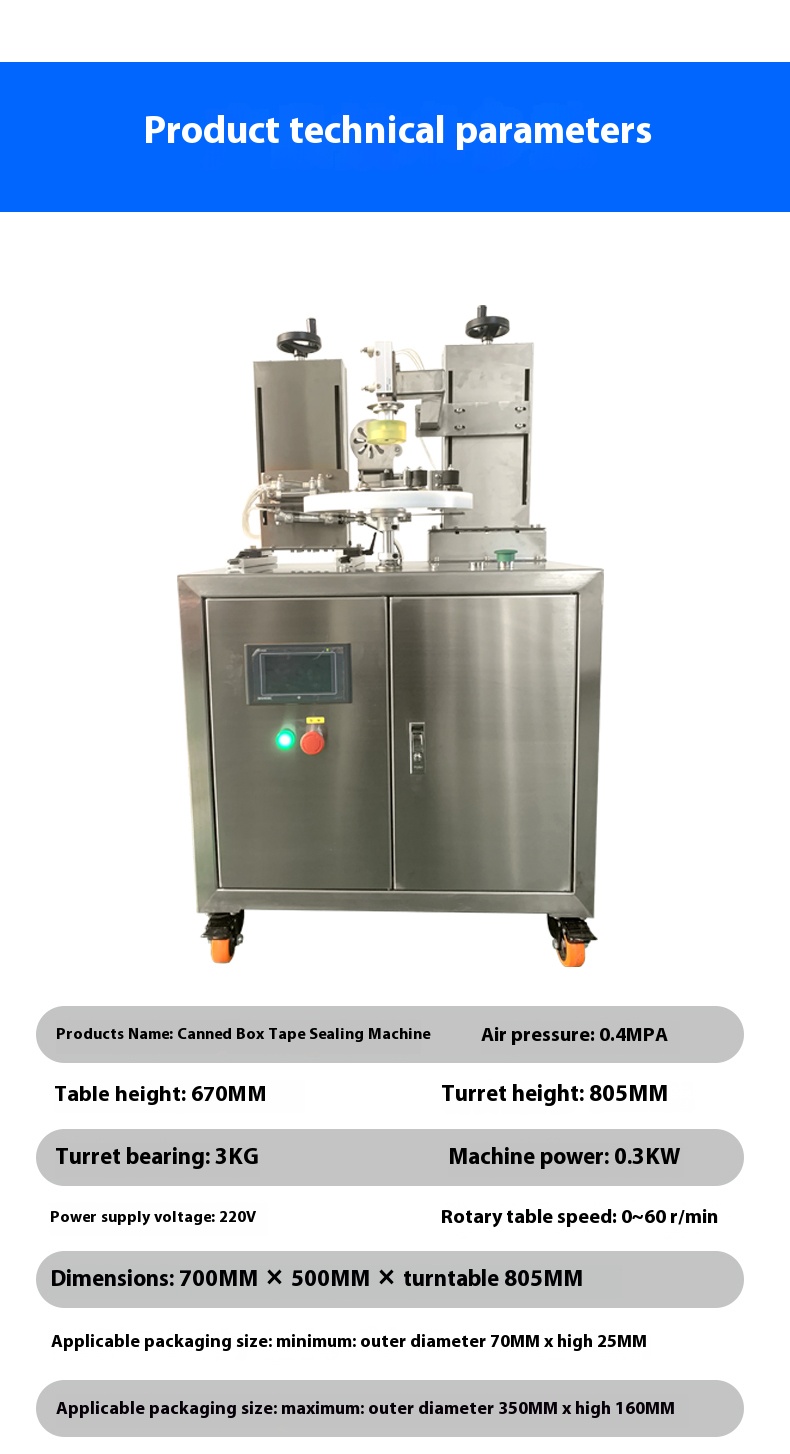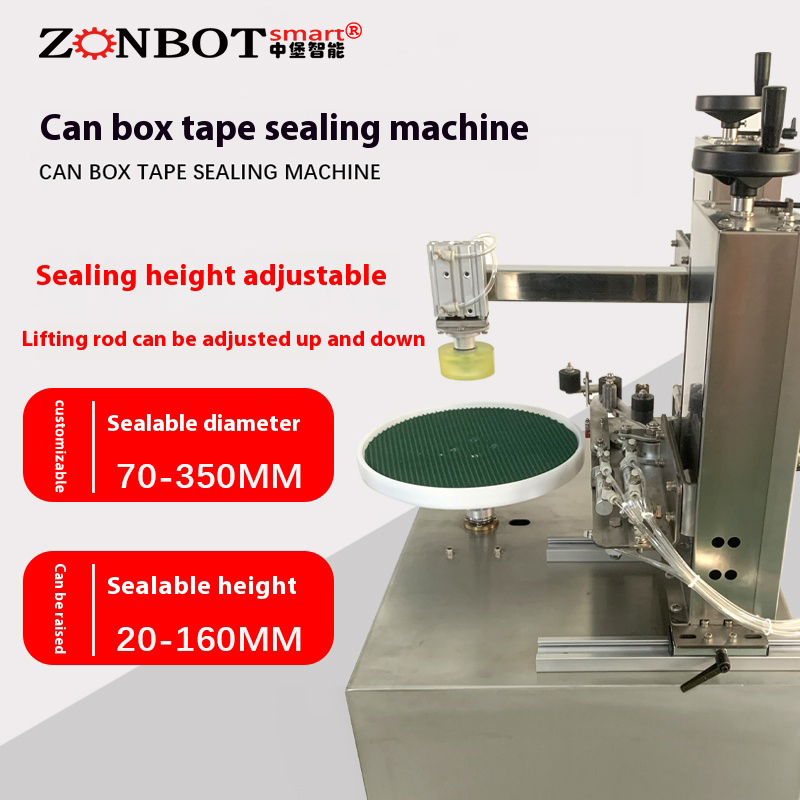 The can and box tape wrapping machine features precise tape feeding, adjustable sealing length, and no overlapping waste.