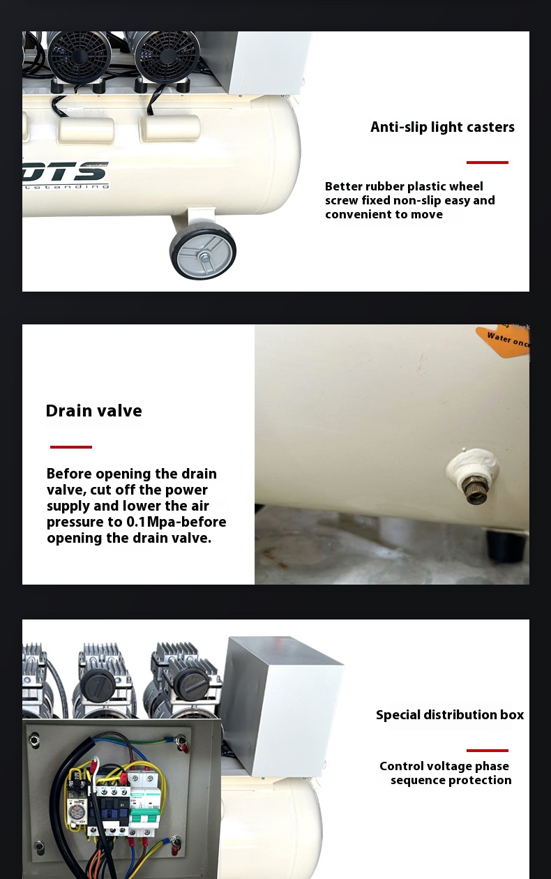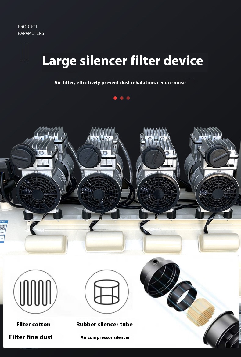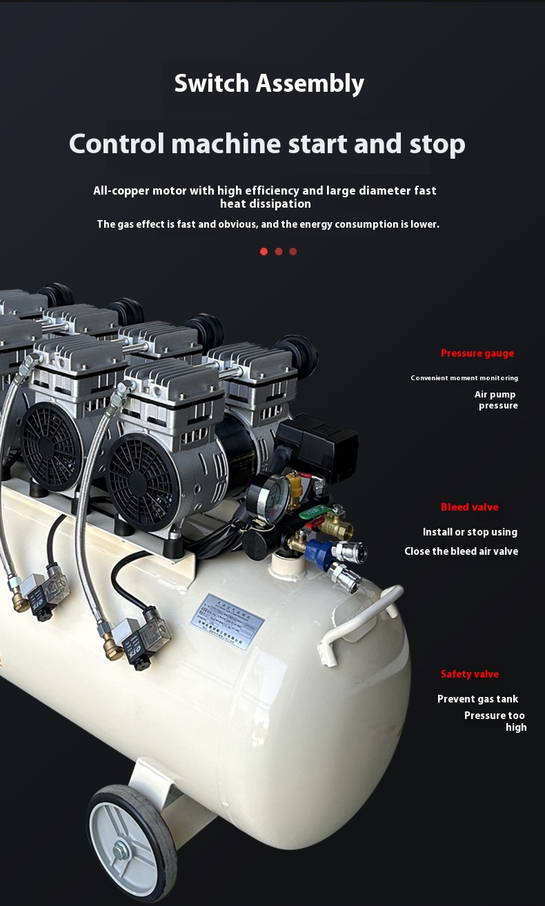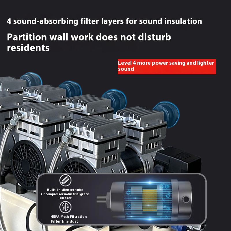 Compression Process: The piston moves upward, reducing the cylinder volume and compressing the air to raise pressure. Special piston rings and cylinder materials (such as PTFE and other self-lubricating materials) provide good sealing and lubrication between the piston and cylinder, ensuring smooth compression without lubricating oil.