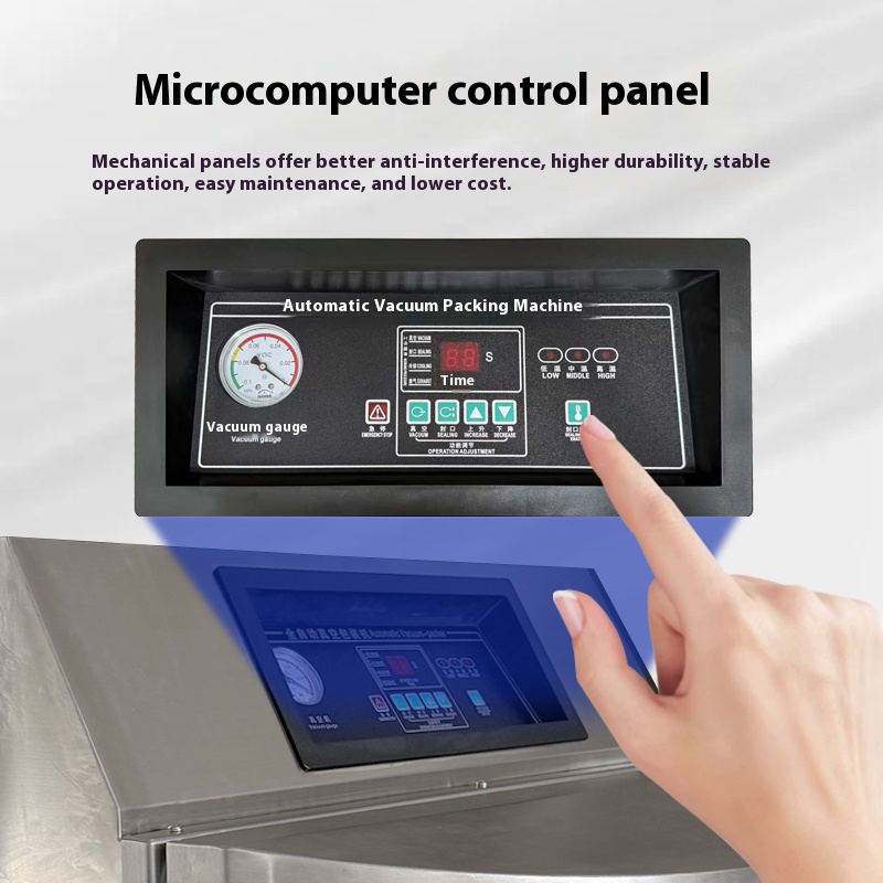 Excellent Packaging Effect: The vertical pneumatic sealing prevents the leakage of contents from the bag. It ensures uniform pressure application on the seal, resulting in a flat, neat, and wrinkle-free seal. Additionally, the chamber-type packaging design typically achieves a higher vacuum level compared to external suction-type machines. This effectively removes air from the bag, preventing material oxidation, mold growth, and other quality issues.
