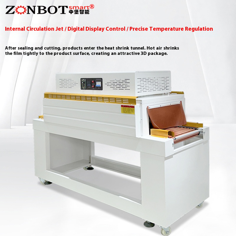 The heat shrink tunnel is equipped with built-in hot air circulation fans and multiple groups of heating tubes, forming a uniform high-temperature air flow field. This prevents film wrinkling or product deformation caused by local overheating. Most tunnels are equipped with a viewing window on the top for real-time observation of the shrink effect. At the same time, the conveyor speed can be adjusted (linked with the heating temperature) to adapt to the shrinkage needs of products with different thicknesses (e.g., thin-walled toys vs. thick-walled home appliance accessories).