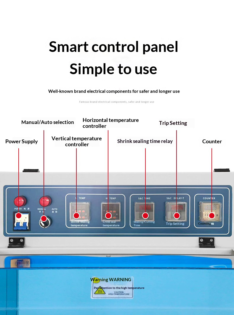 • Heat Shrink System: Multi-zone temperature control (adjustable from 0-300℃ with an error of ±2℃) supports adaptation to different film materials, delivering flat and wrinkle-free shrink results that fit the product tightly without looseness;